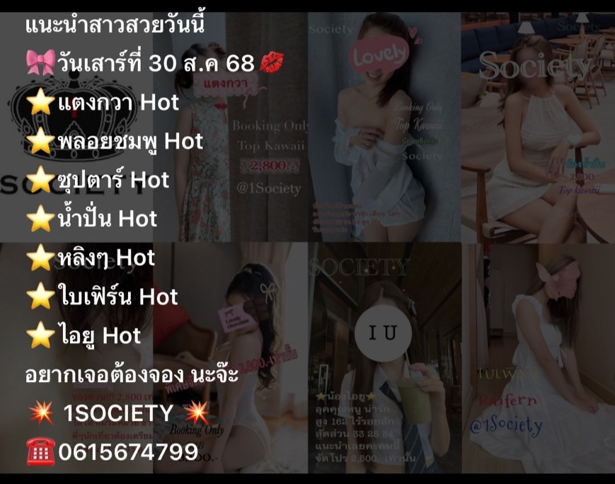 หน้าหวานๆ สูง 165 นมแท้ 33 25 35 งานครบเครื่องเรื่องเสียว เรียกได้ว่าตัวทีเด็ดอีกคนของ 1Society โปรไฟล์ดี ผิวเนียน งานดีใส่ใจทุกท่วงท่า เสียวทุกมุมมอง เราจัดมาให้ได้เสียวกันแบบเต็มๆตา หน้าแบบนี้ หุ่นแบบนี้ต้องห้ามพลาดเด็ดขาด แนะนำว่าต้องลอง ดีจริง เด็ดจริง อร่อยจริง