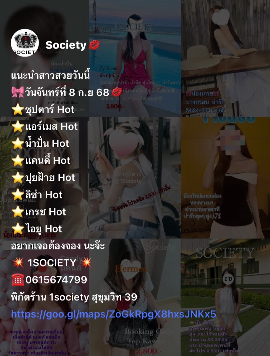 1 Society ขอแนะนำน้องเกรช หน้าสวย ขี้อ้อน นัวร์ไหลลื่น ครบเครื่อง เลยคะคนนี้ Body บางกรอบ ไร้รอยสัก สัดส่วน 34 24 33 สูง 165  อยู่ด้วยกันเหมือนอยู่กับแฟน จัดเลยตอนนี้ ห้ามพลาด!!