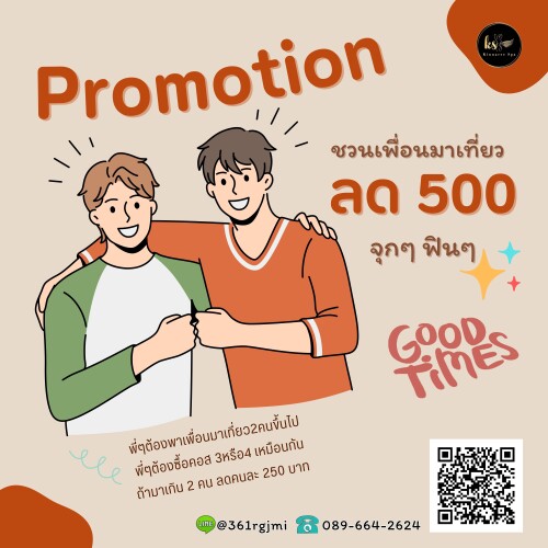 เงื่อนไข : พี่ต้องมาพร้อมกัน 2 คน มามากกว่า2คน รับส่วนลดคนละ 250 บาท