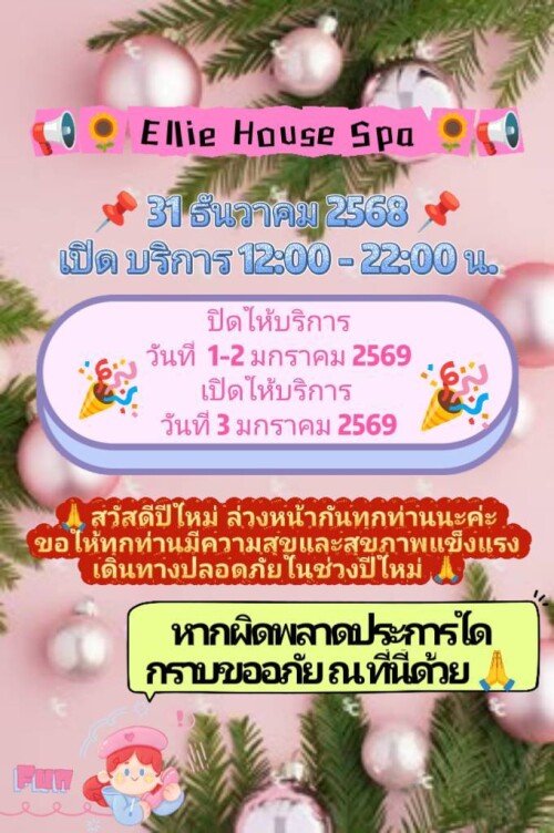 Ellie House Spa เปิด 12:00-01:00 โทร 096-3539296