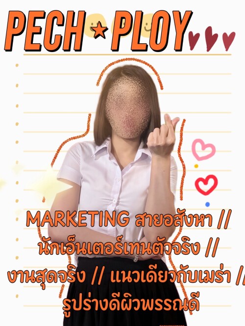 Entertainerสาวเสียงดี จากMarketingมากความสามารถ เสน่ห์ครบพร้อม สดใสซาบซ่า เรือนร่างOriginalแท้True รูปร่างปังเป๊ะ ผิวพรรณขาวเนียน ไร้รอยสัก นุ่มนวลชวนเพลิดเพลิน เปรี้ยวได้หวานดี GFกระจาย งานมาเต็มทุกสตรีม มีเฮมีฮาไปได้ตลอดเกมส์