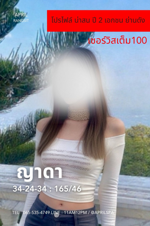สวัสดีเพื่อนๆพี่น้องนักนวดทุกท่านครับ วันนี้จะมาขอรีวิวน้องญาดา ดาวดวงใหม่แห่งร้าน April spa rangsit เนื่องจากไม่ได้แวะเวียนมาที่ร้านสักพักหนึ่ง เลยทักหาน้องพีอาร์ให้ส่งภาพสินค้าประจำวันให้ชมเชย เลื่อนดูจนไปสะดุดตากับน้องคนหนึ่ง หน้าตาดูสะสวย หุ่นอกเอวดีงาม ตัวเล็กยกง่าย ชายตาไปมองชื่อน้องญาดา ไม่คุ้นตาเลยถือโอกาสลองของใหม่สักหน่อย ว่าแล้วก็จัดแจงจองคิวน้องไว้ล่วงหน้า ถ้าโอนจองก็จะได้ส่วนลด 200 แต่ถ้าเขียนรีวิวแบบผมนะ ได้ส่วนลด 500 นะเพื่อนๆ อย่าลืมใช้สิทธิ์กัน แถมเป็นการบอกบุญรีวิวนักนวดคนอื่นด้วย อ่ะว่าแล้วก็กลับมาที่น้องของเรา พอมาเจอตัวจริงต้องบอกว่าเซอร์ไพรส์มาก ไม่คิดว่าน้องเกรดระดับนี้จะมาแฝงตัวเงียบๆอยู่ย่านรังสิต คือหุ่นน้องดีกรีพริตตี้มอเตอร์โชว์ MC งานแข่งรถก็ว่าได้ แถมผิวขาวเนียนโอโม่ พอน้องลอกคราบออกมานะไม่ผิดหวัง ใครชอบสายป่าพุ่มไม้แค่เห็นน้องตอนลอกคราบก็แทบจะกลั้นไม่ไหว พอถึงเวลาน้องได้โชว์สกิลออกโรงเท่านั้นแหละ หมดข้อสงสัยใดๆทั้งสิ้น น้องได้คะแนนการใช้ปาก 20/10 แถมเรื่องอื่นๆให้ 100/10 ดูภายนอกเป็นคนเรียบร้อย พูดน้อย สวยแบบธรรมชาติไม่แต่งเติม อ่อ แต่น้องทำหน้าอกนะ แต่เป็นการทำที่ธรรมชาติมากๆ ว่าแล้วก็ขอจบการรีวิวแต่เพียงเท่านี้ วันหลังจะมารีวิวน้องคนอื่นให้อีกนะคร้าบ C U ชาวนักนวดปวดเมื่อย